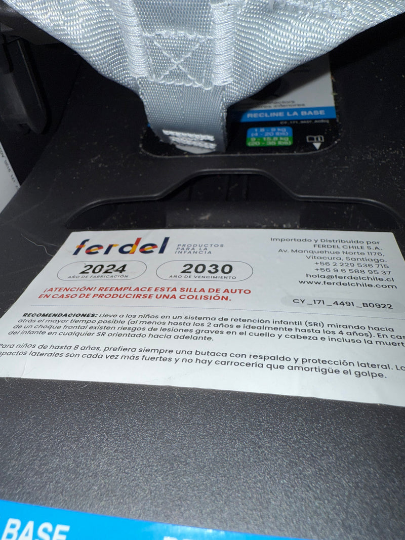 Descripción: Vencimiento silla: 9/11/2030. Incluye base. Sin detalles.